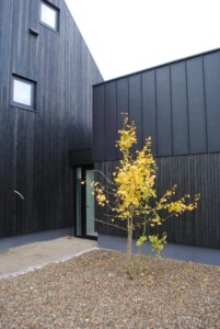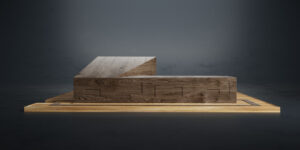 Voor dit project onderzoeken we een combinatie van natuurlijke en duurzame materialen. In de selectie zie je onder andere gebrand hout (Shou Sugi Ban), massief naaldhout, berkenmultiplex, een licht terrazzo-achtig oppervlak en een diepzwarte metalen plaat. Samen vormen ze een rustige, tactiele en tijdloze basis voor het ontwerp, waarbij contrast en verfijning centraal staan.